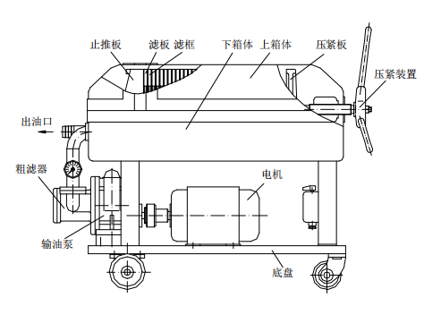 7、在濾油過程中,提取油樣時,可以旋開油嘴取樣。 過濾完畢后,松開壓緊裝置,逐片取出濾紙,清洗濾紙和 濾框內(nèi)的濾渣,更換濾紙重新夾好壓緊,蓋上油箱。